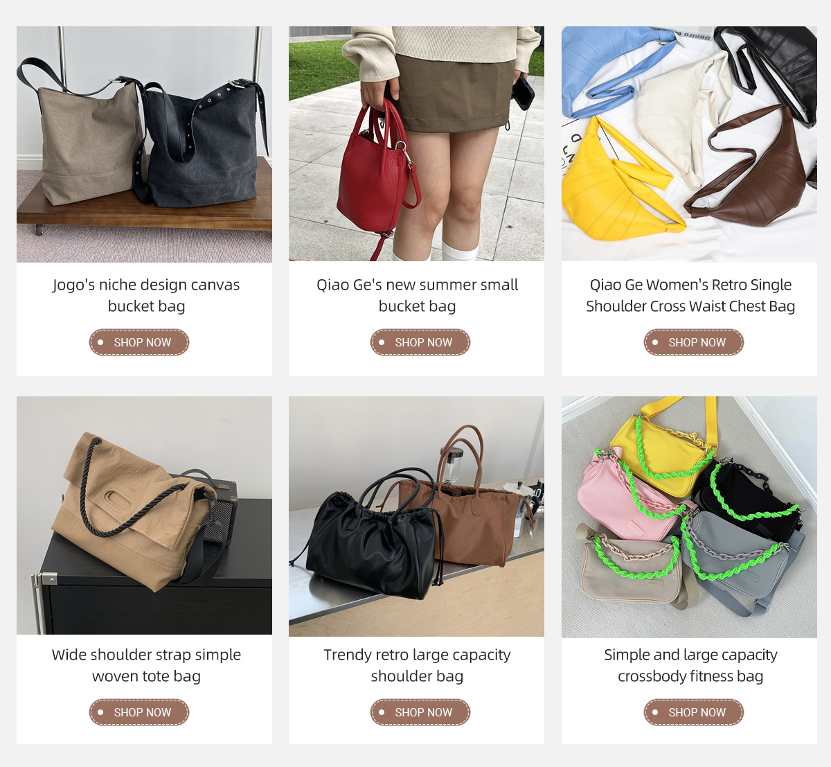 Productos principales:Bolso de mujer, bolso de ocio, bolso de deporte, bolso de exterior, bolsos de hombre y mujer